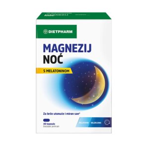 Magnezij noć kapsule su dodatak prehrani s magnezijem, vitaminom B6, melatoninom, valerijanom i Lactium®-om.