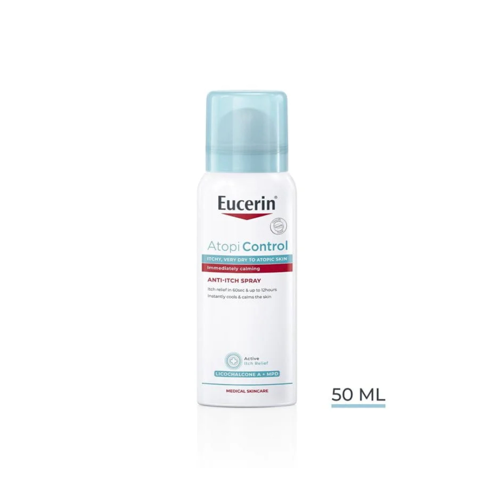 Eucerin AtopiControl akut sprej za nadraženu kožu hrani i umiruje nadražena područja kože zahvaćena svrbežom. Sadrži polidocanol koji smanjuje svrbež, SymSitive koji umiruje kožu i crvenilo, te mentoksipropandiol koji hladi i smiruje.