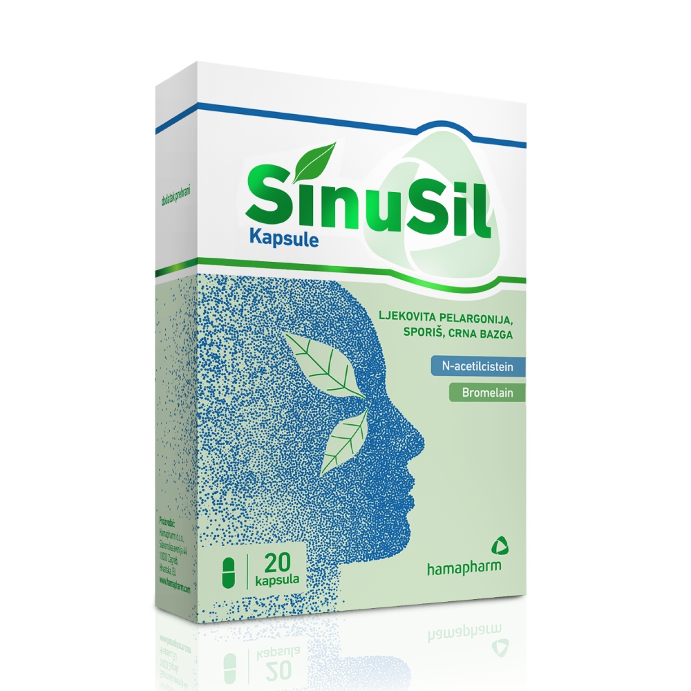 Hamapharm Sinusil je dodatak prehrani u obliku kapsula koji sadrži suhi ekstrakt zelene verbene (sporiša), suhi ekstrakt korijena ljekovite pelargonije, suhi ekstrakt cvijeta crne bazge, N-acetilcistein, i bromelain.