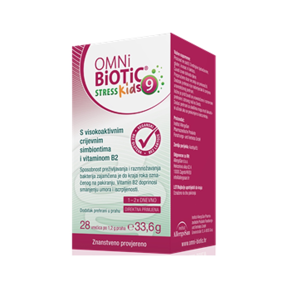 OMNi-BiOTiC® STRESS Kids je dodatak prehrani posebno razvijen za djecu od 3. godine nadalje koji sadrži bakterijske sojeve i vitamin B2.