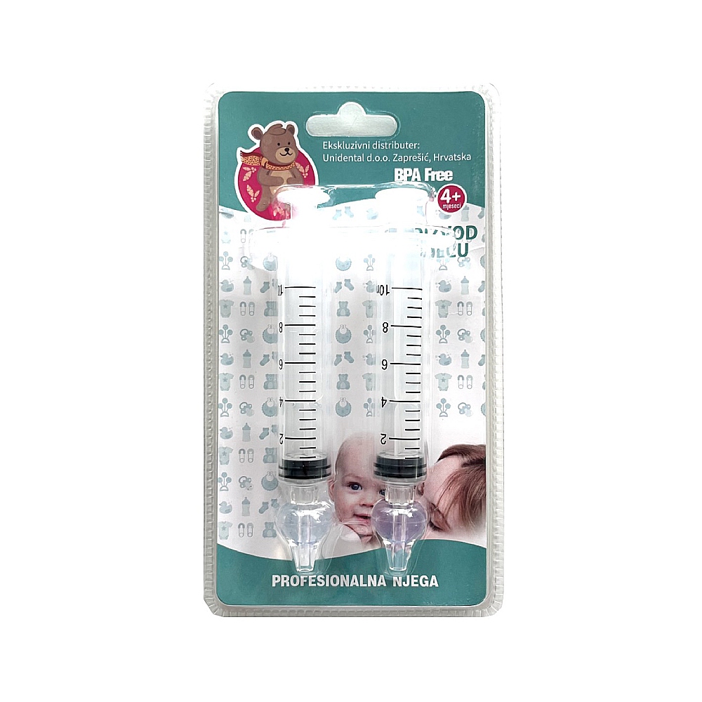 Šprica s patentiranim nastavkom za čišćenje dječjih nosića je medicinski proizvod I. klase odobren od strane HALEMD-a.